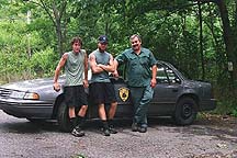 Taking a break with Desperado, a park ranger who leaves water and snacks for hikers. He was sort of a myth until we met him in person. He gave us his turkey sandwich. What a nice guy.