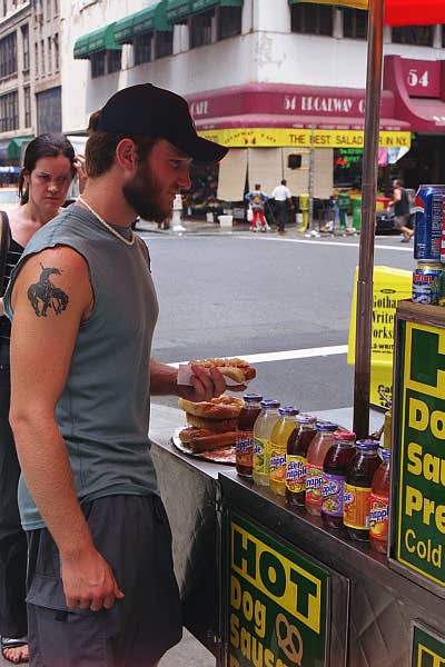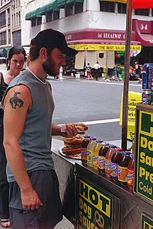 You can't go to New York without eating some hot dogs. I was more into the sausage and kraut.