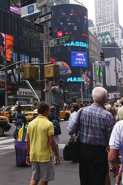 Marcus on Broadway - We seemed to fit right in with the other bums. Notice that nobody even pays attention to him hanging on the sign.