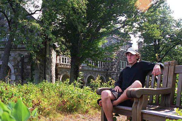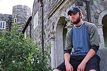 Marcus' beard is coming in pretty well with the "castle" again in the background.