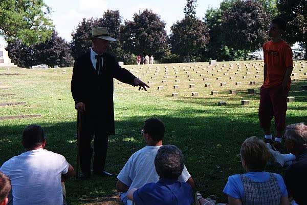 Getting a history lesson (or an eye witness account) of the Battle of Gettysburg. The old man played his part very well.