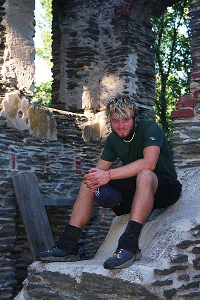 Marcus is sitting in the ruins of St. John's Episcopal church, built in 1852 in Harpers Ferry.